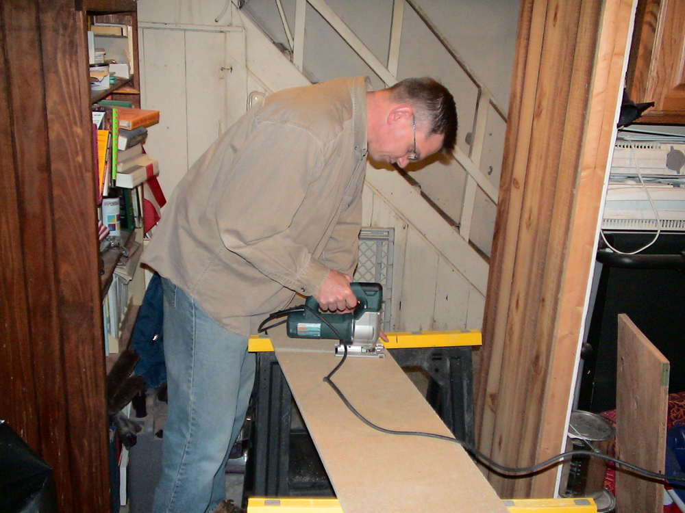 Neil cutting the homasote for the last portion of the current benchwork