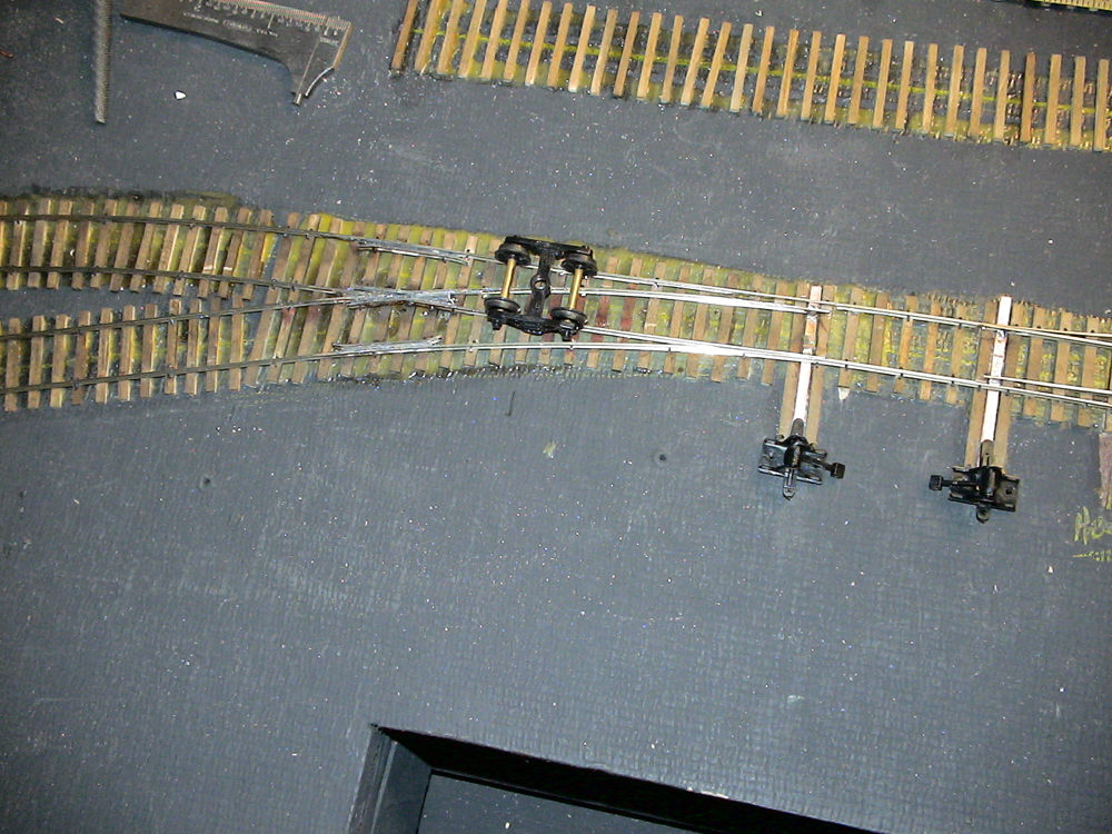 Here is the turnout west of the three way with the ground throws installed.