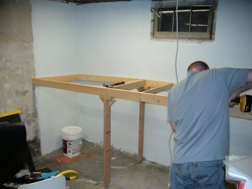 Ray working on the bench work.