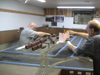 New issues that popped up tonight were a gauge problem at Lifschultz 1 that Craig adjusted, dirty wheel sets on the Proto 2000 Erie S-1 and a few bad ordered cars some of which were fixed on the spot. There was a request that came out of the 30th Street crew of adding a set of tracks were they can build north bound trains. Since the yard is a fragment of what it would have been, Tom, Neil and I discussed what could be done. A solution could be adding two more tracks the lead off the dump track approach. These would follow Eleventh Avenue under the High Line and end in the wall.